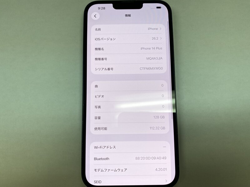 アクティベーションロック・・・OFF Wi-Fi不可・Bluetooth不可 AppleCare Services 購入日: 2023年6月13日 ※AppleCareは前所有者により解約になる恐れがあります。解約になった場合はAppleCareのサポートを受けることはできません。また解約を理由として弊社に返品返金や一部値引き等を請求されても対応いたしかねます。