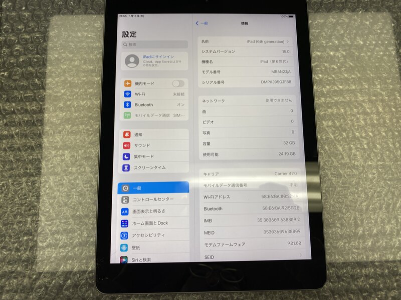 アクティベーションロック・・・OFF 画面割れ