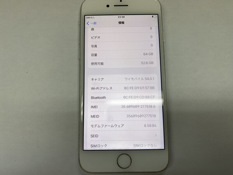 EU567 SIMフリー iPhone8 シルバー 64GB