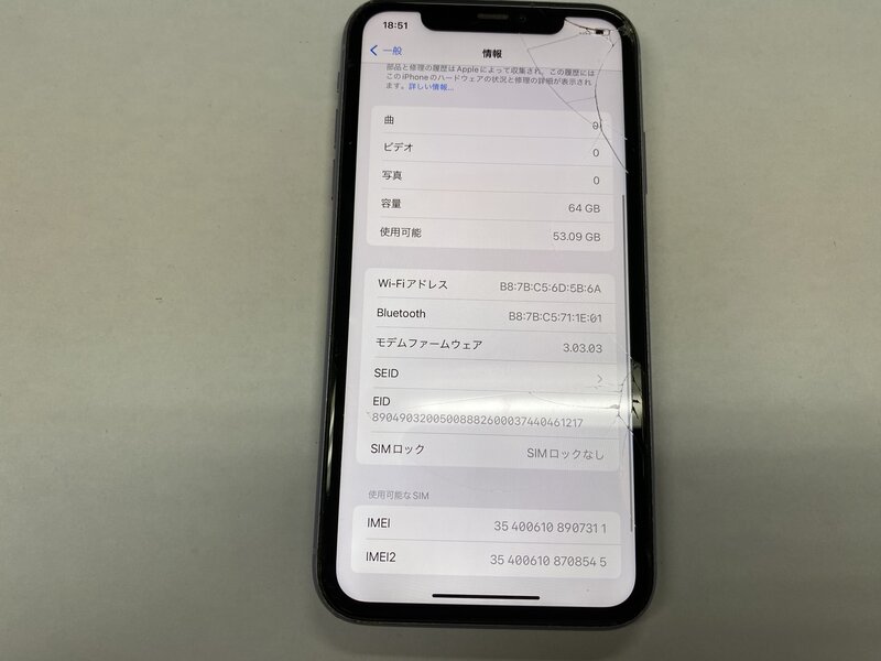 アクティベーションロック・・・OFF 画面割れ・ゴーストタッチ・FaceID不可・基板不良