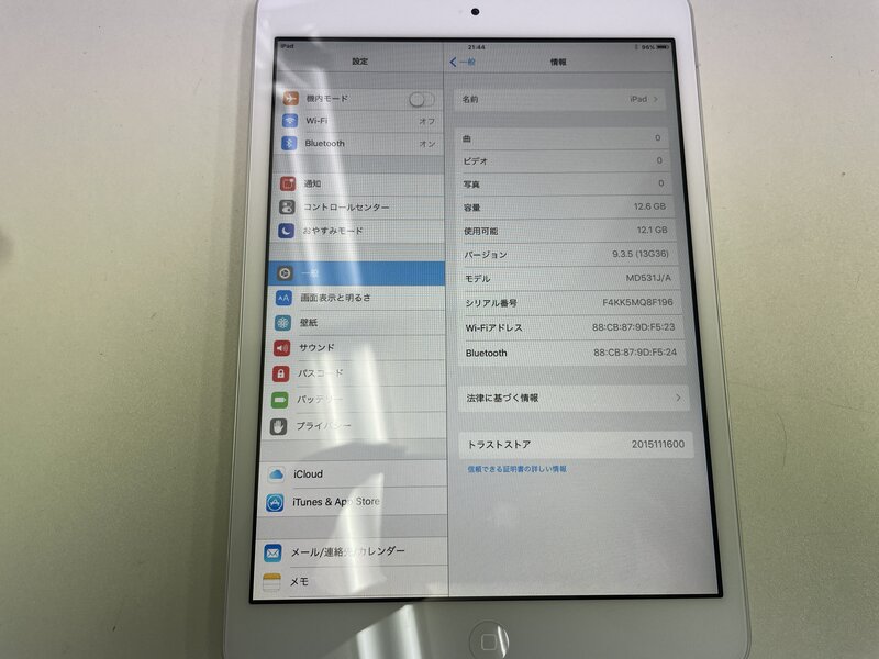 MJ028 iPad mini Wi-Fiモデル A1432 16GB ホワイト