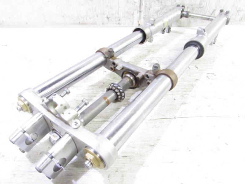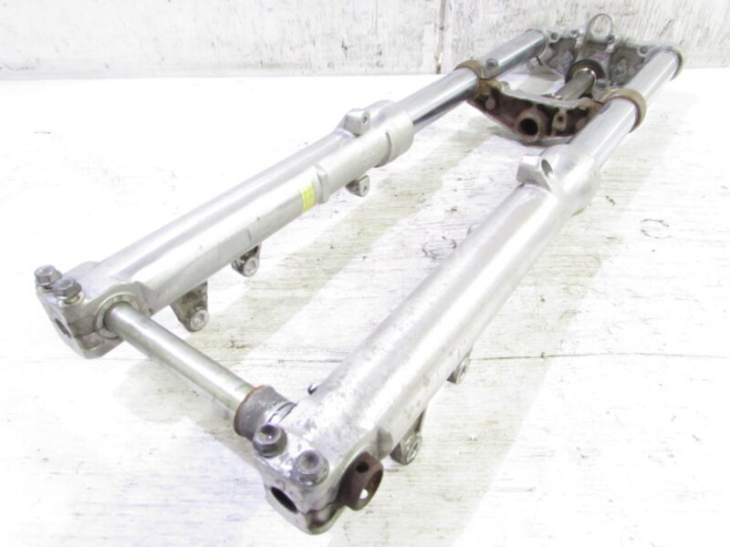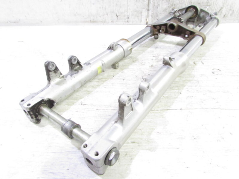 【足回り】 ☆フロントフォーク・・・目視で曲がりもなく、外観特に気になるような破損は御座いません!取り外し前に数回ボトムをさせてみましたところ少しOIL滲みが見られました! ダストブーツの欠品が御座います! ☆スイングアーム・・・目視にて曲がりもなく、外観特に気になるような破損は御座いません!シャフトなどのSETとなります! ☆リアサスペンション・・・SHOWA製!! 目視で曲がりも無く、外観特に気になるような破損は御座いません! 比較的状態の良い商品となります! ☆ホイール・・・前後共に目視で曲がりもなく、スムーズに回転しておりました! ☆タイヤ・・・前後共に実働車より取り外しており残り溝も御座いますのでこのままでのご使用は可能とは思いますが、消耗品となりひび割れが見られますので商品画像をご覧頂き状態の把握をお願い致します! 一部溶け飛び??が御座います!