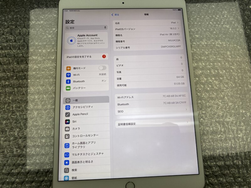 アクティベーションロック・・・OFF 画面浮き・バッテリー膨張