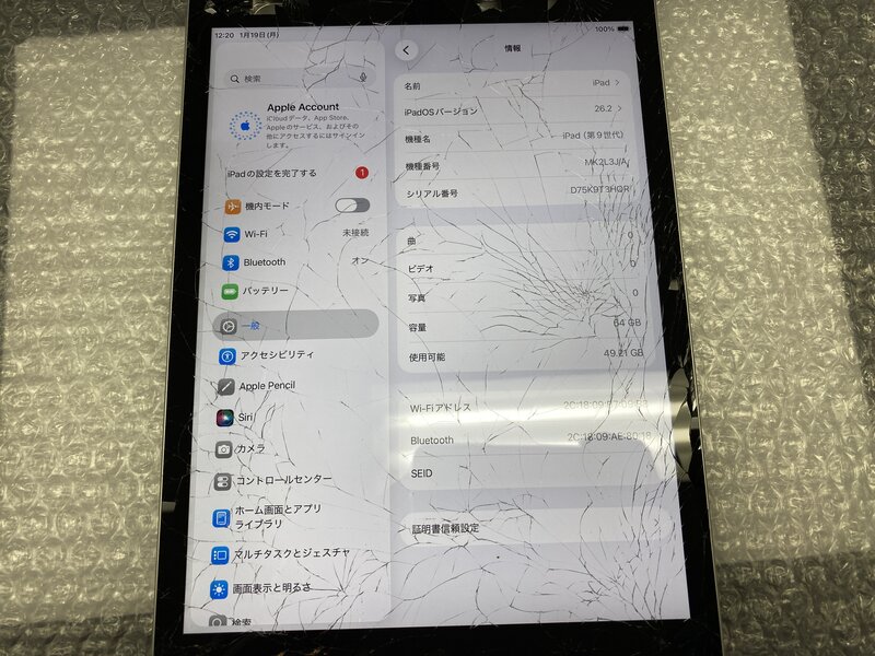 アクティベーションロック・・・OFF 画面割れ・インカメラ割れによる曇り