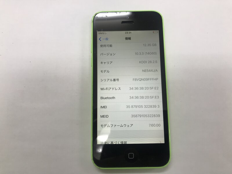 LG587 au iPhone5c グリーン 16GB 判定〇