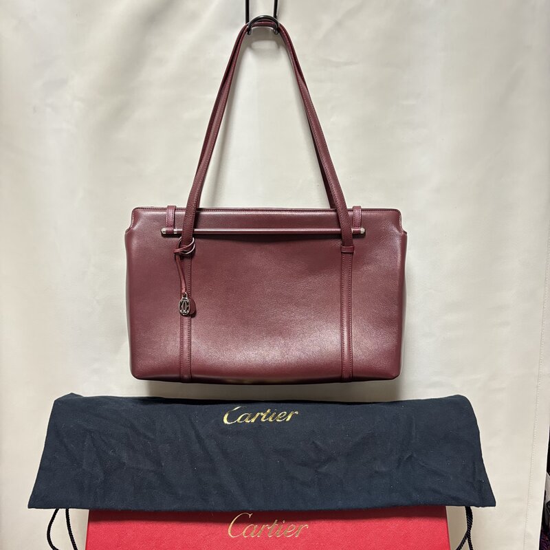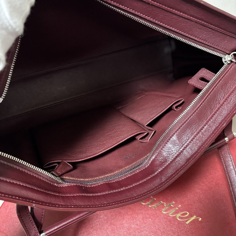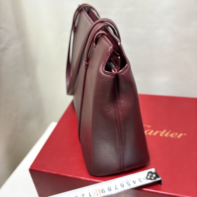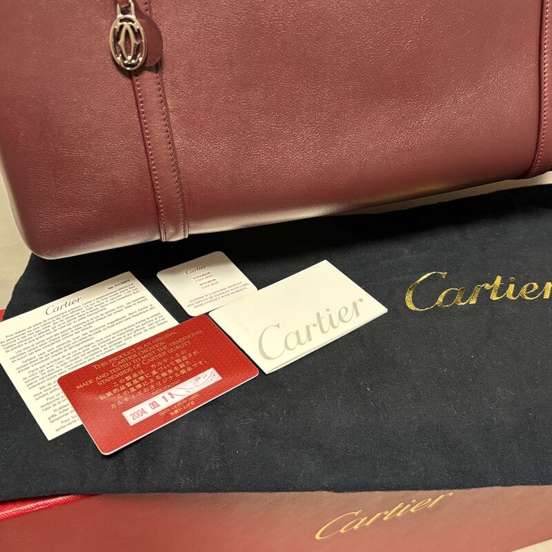 極美品 希少 Cartier カルティエ カボション トートバッグ ハンド ビジネス シルバー金具 ボルドー IW601AB14CRT100