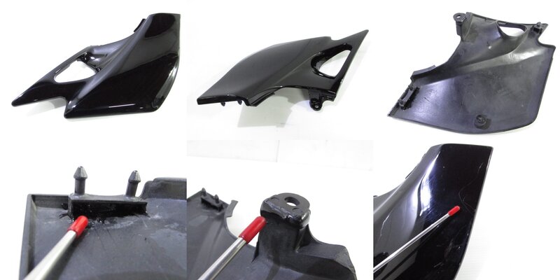 【外装】 ☆タンク・・・塗装後未使用!! 特に気になるような破損はなく、艶も御座います! タンク内見える範囲に少し錆が見られますので燃料フィルターのご使用、または洗浄補修後のご使用をお勧めいたします! ☆Fフェンダー・・・塗装後未使用!! 特に気になるような破損はなく、艶も御座います! 一部ひび割れ補修ヵ所が御座います! ☆サイドカバー・・・塗装後未使用!! 左右共に特に気になるような破損はなく、艶も御座います! 一部爪折れ補修ヵ所、補修ボンドの表面付着が御座います! ☆テールカウル・・・塗装後未使用!! 特に大きな破損はなく、艶も御座います! 一部欠けや補修ヵ所が御座います! ☆シート・・・特に気になるようなレザーの破れやベースの破損は御座いません!