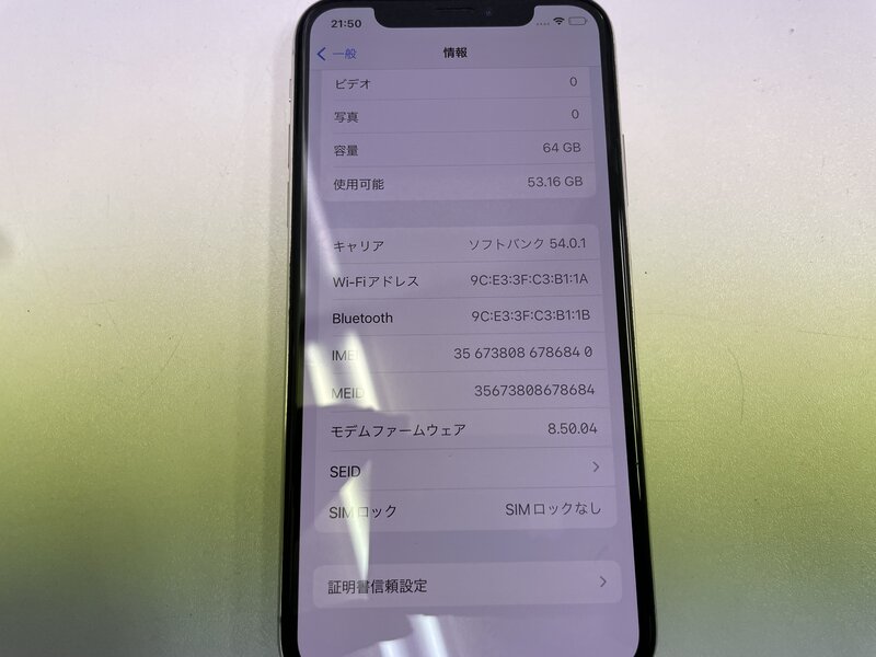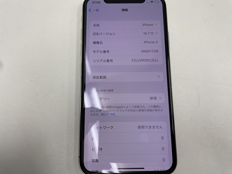 MJ593 SIMフリー iPhoneX 64GB シルバー
