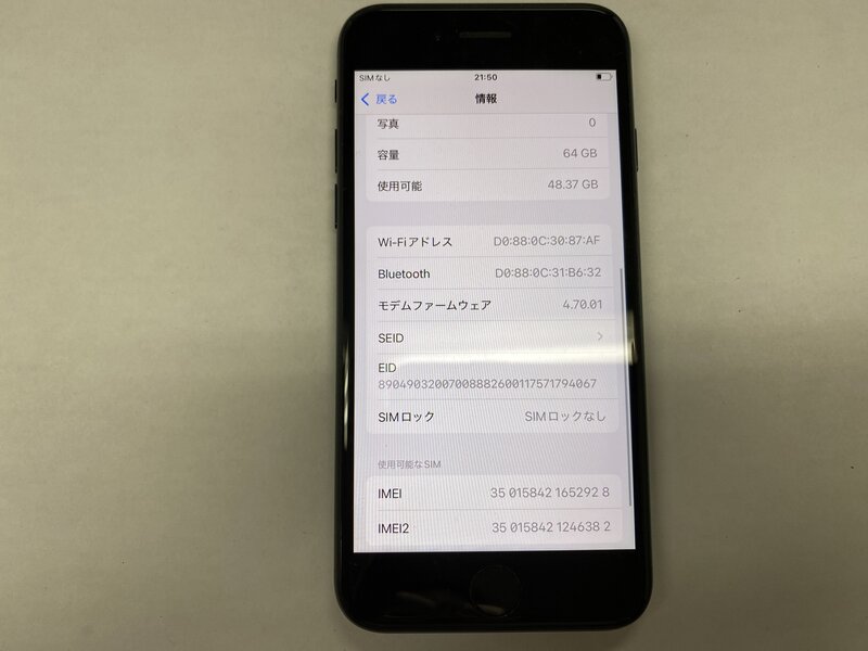 EW614 SIMフリー iPhoneSE 第3世代 ミッドナイト 64GB