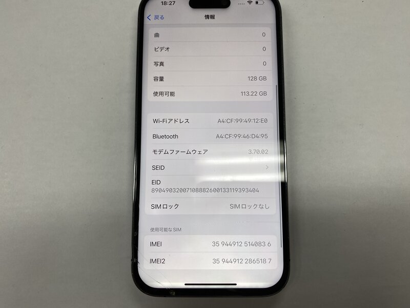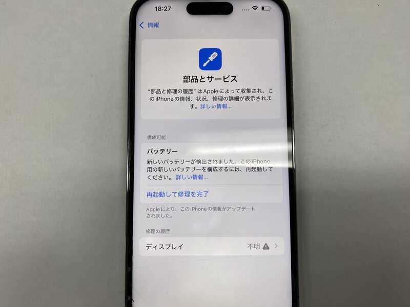 アクティベーションロック・・・OFF 画面割れ・ディスプレイ警告・バッテリー交換品