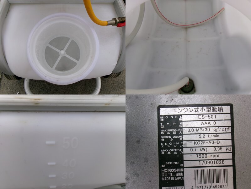 ES-50T コーシン 小型動噴 動力噴霧機 手押式 高圧 セット動噴 タンク 5L 動作確認OK 農業 薬剤 散布 中古 滋賀県