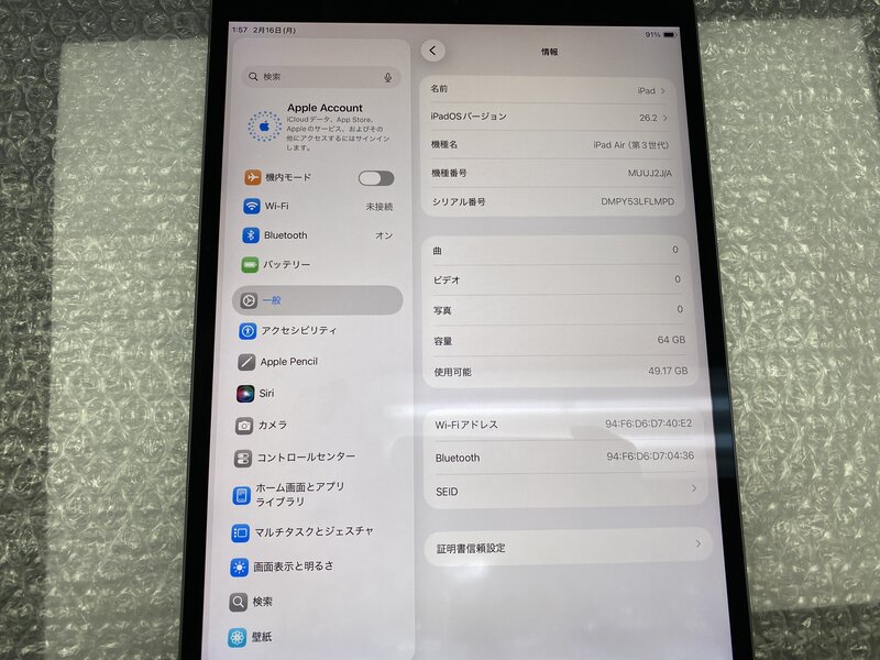 コンピュータ > タブレット > Apple > iPad本体