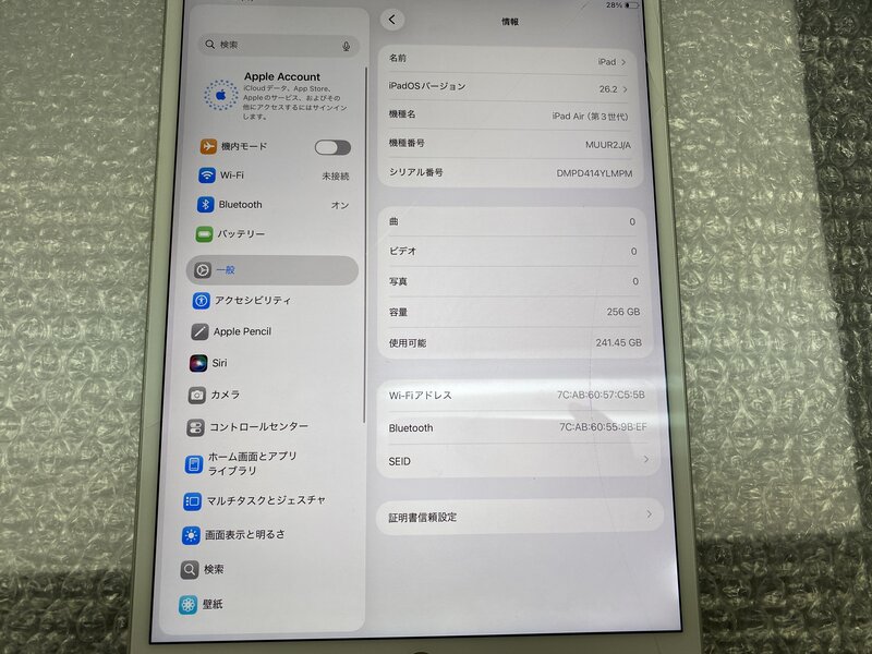 アクティベーションロック・・・OFF 画面割れ・光漏れ