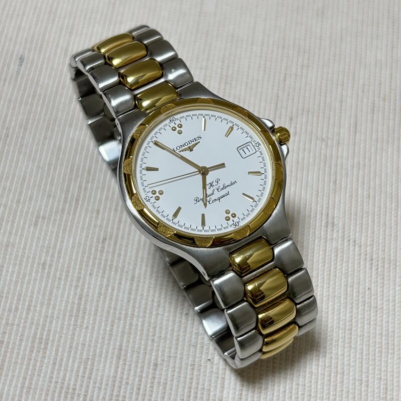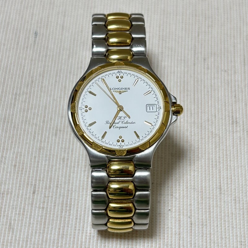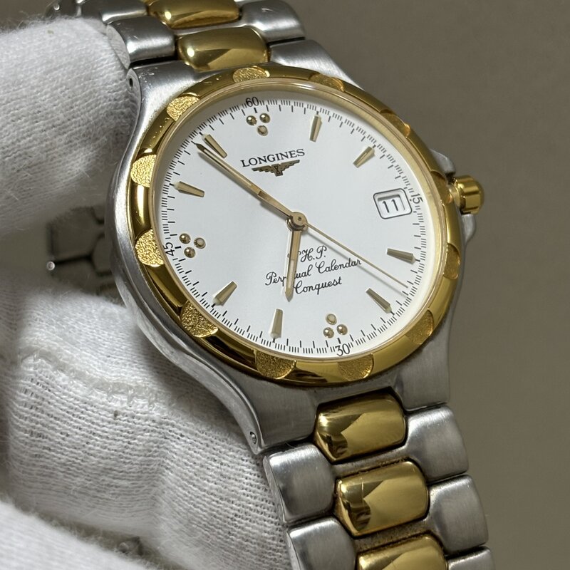 1円~ LONGINES ロンジン コンクエスト VHP パーペチュアルカレンダー コンビ メンズ クオーツ LI.627.3 ホワイト文字盤 IW602CT08LNG
