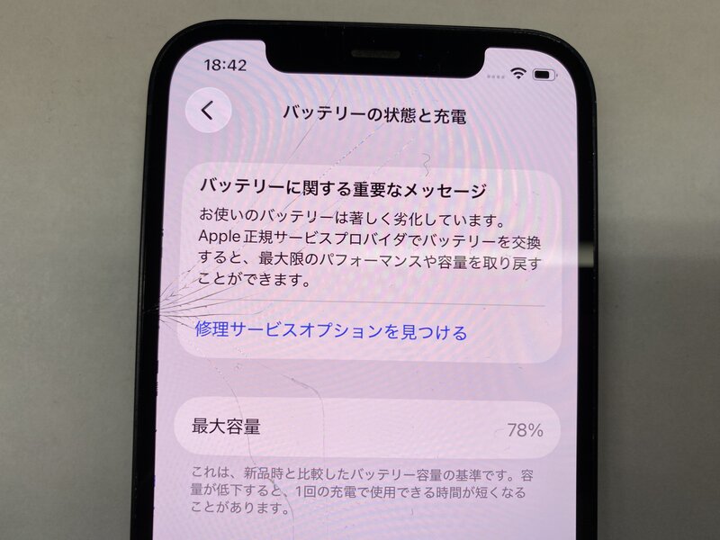 アクティベーションロック・・・OFF 充電端子不可(ワイヤレス充電可)・画面割れ