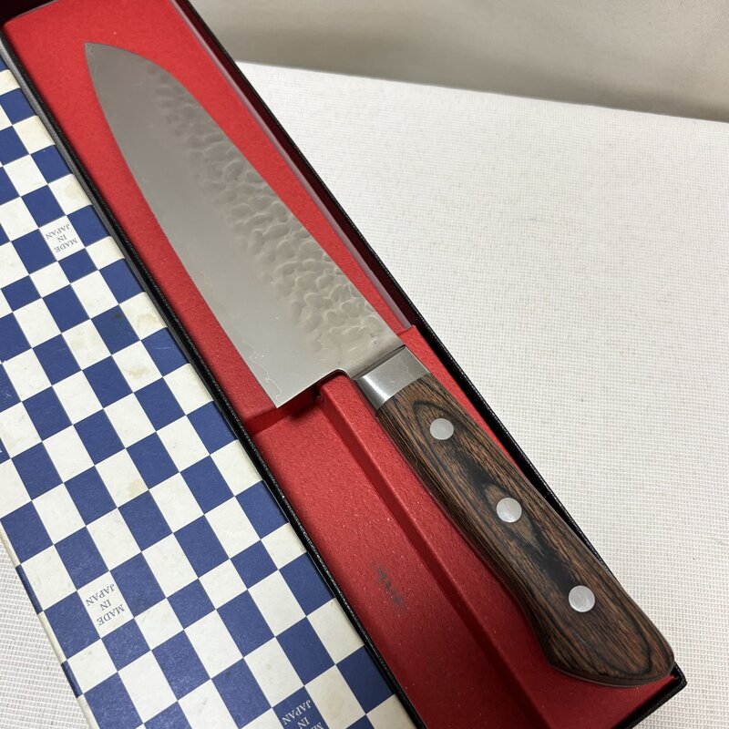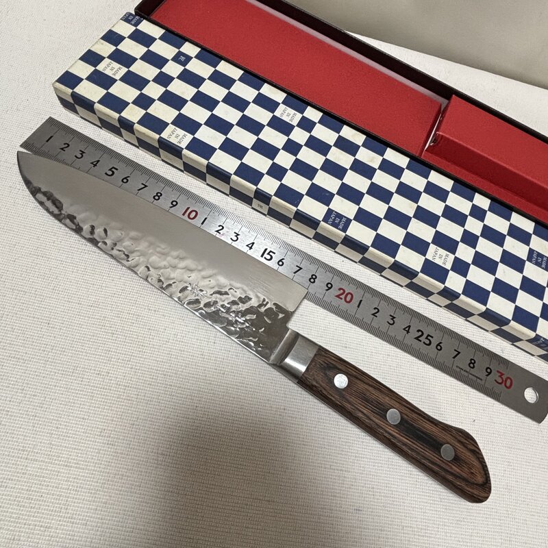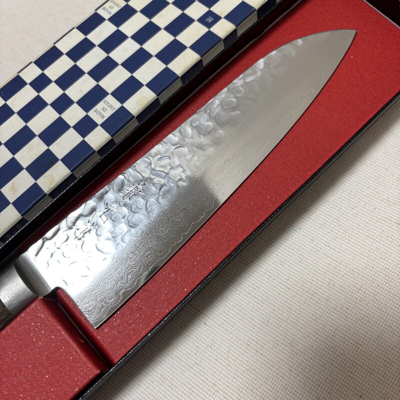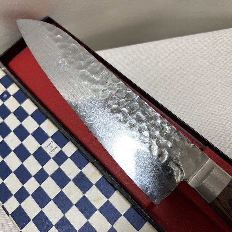 兼元作 箱入 良品 V金10号 鎚目 種属 三徳包丁 ダマスカス 180mm 高級和包丁 職人 IW602DK34KNM60