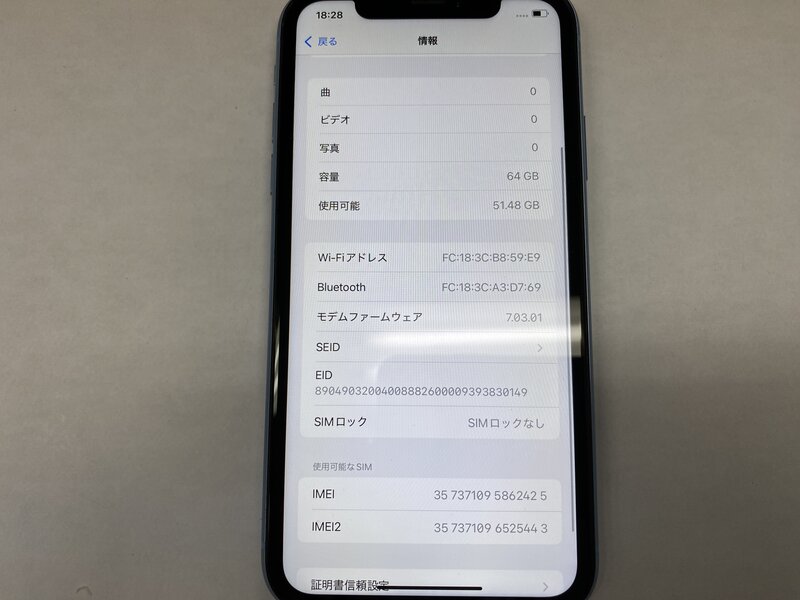 EX765 SIMフリー iPhoneXR ブルー 64GB