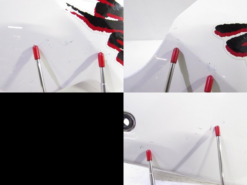 【外装】 ☆タンク・・・特に気になるような破損はなく、艶も御座います! タンク内見える範囲に特に気になるような錆は見られません! 一部傷や軽い凹み、タッチアップ補修など御座います! ☆スクリーン・・・程度良好!! 特に気になるような破損は御座いません! 比較的状態の良い商品となります! ☆アッパーカウル・・・程度良好!! 特に気になるような破損はなく、艶も御座います! 一部小傷やタッチアップ、補修が御座いますが比較的状態の良い商品となります! ☆アンダーカウル・・・程度良好!! 特に気になるような破損はなく、艶も御座います! 一部傷や塗装剥げが御座いますが比較的状態の良い商品となります! ☆Fフェンダー・・・特に気になるような破損はなく、艶も御座います! 一部傷や小欠け、削れが御座います! ☆サイドカバー・・・程度良好!! 左右共に特に気になるような破損はなく、艶も御座います! 一部傷や塗装小欠け、軽いひび割れが御座いますが、比較的状態の良い商品となります! ☆テールカウル・・・程度良好!! 特に気になるような破損はなく、艶も御座います! 一部軽いひび割れや補強、軽いひび割れなど御座いますが比較的状態の良い商品となります! ☆Rフェンダー・・・特に気になるような破損は御座いません! ☆シート・・・程度良好!! 特に気になるような破損は御座いません! 比較的状態の良い商品となります!