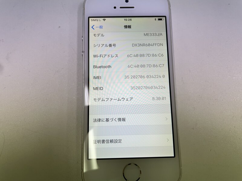 MK116 au iPhone5s 16GB シルバー 判定〇