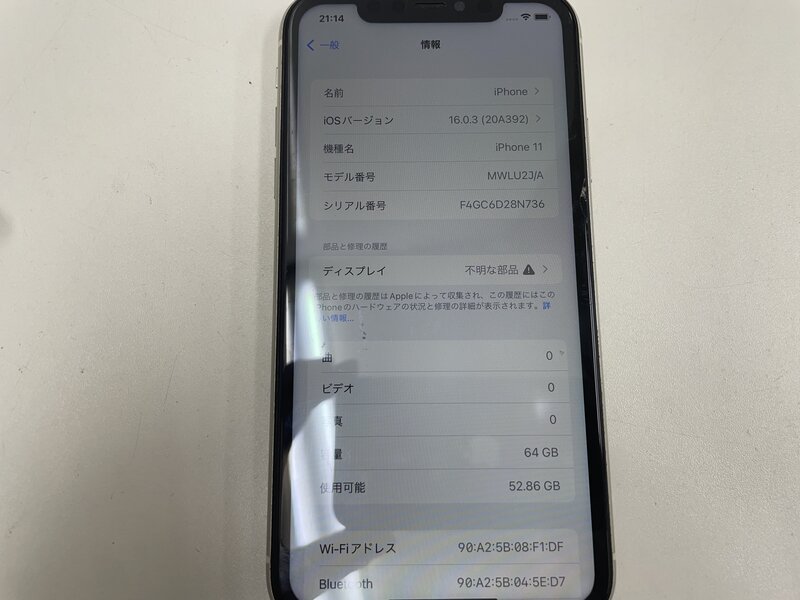 アクティベーションロック・・・OFF タッチ不良・パネル非純正・光漏れ