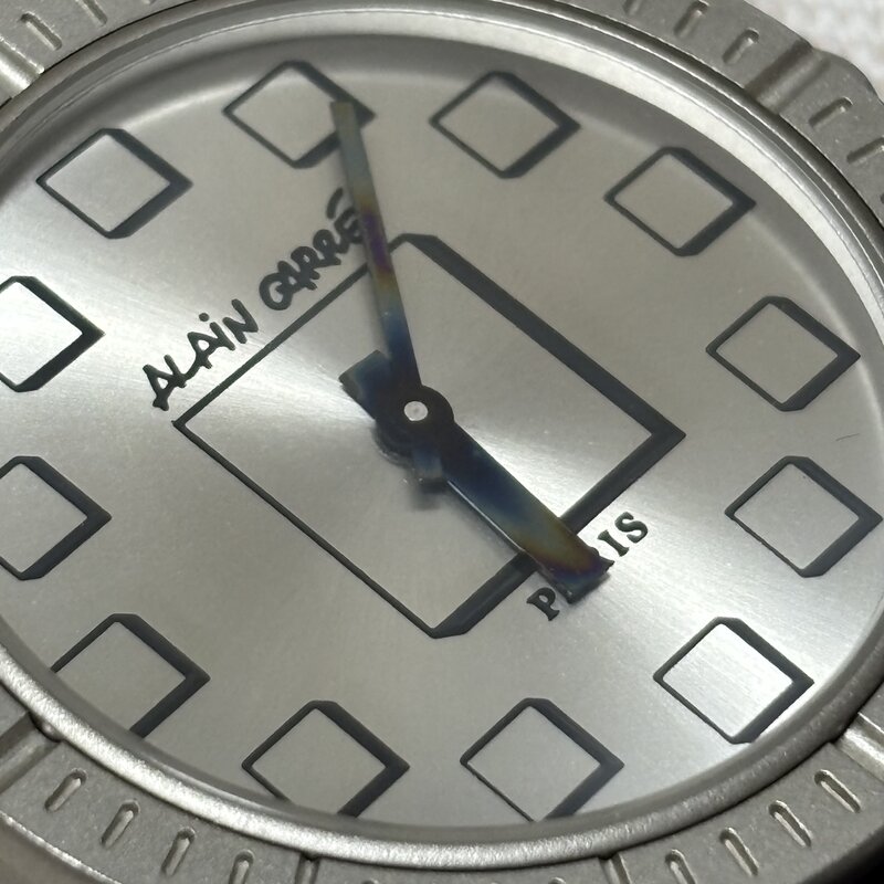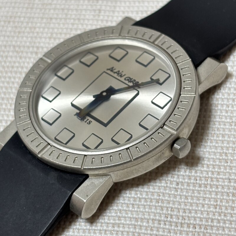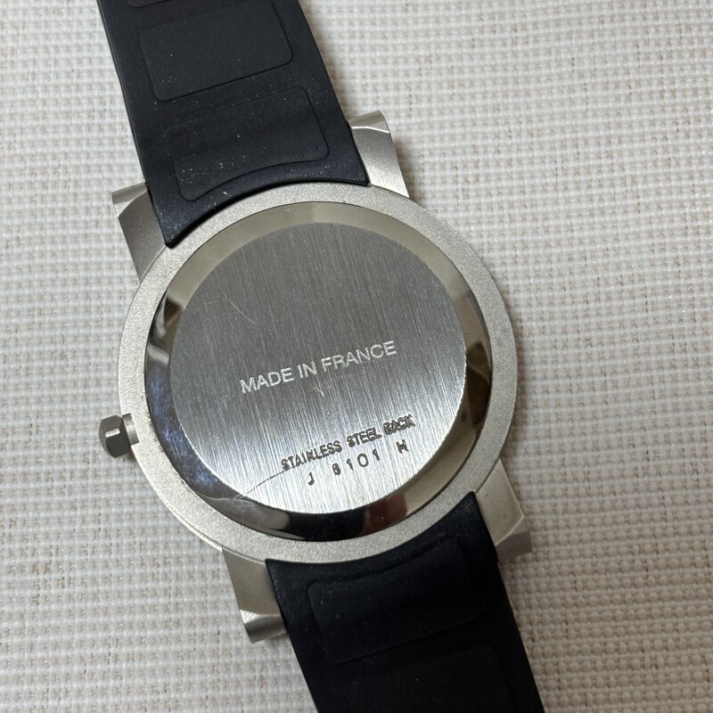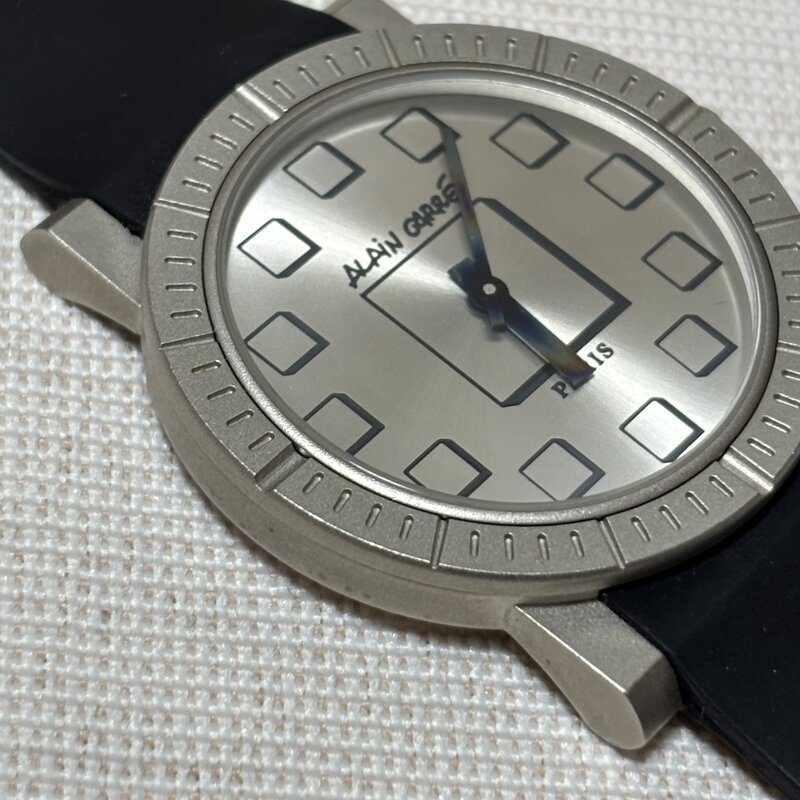 電池交換済 ALAIN CARRE PARIS フランス製 メンズクオーツ腕時計 ラバーベルト 個性的な文字盤 IW903BT05ALN//