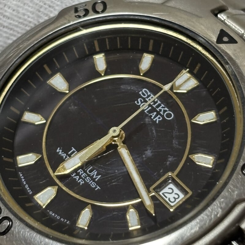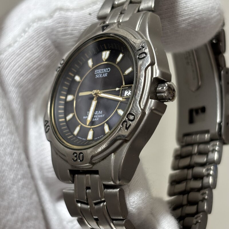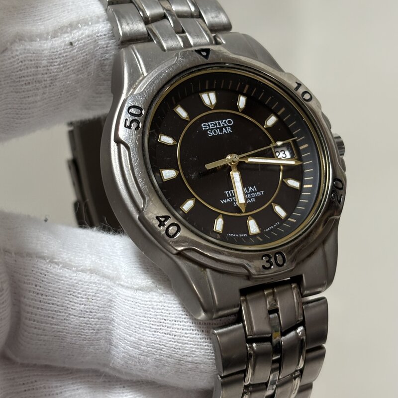 SEIKO セイコー ソーラー 5K25-0A60 3針 デイト チタン 腕時計 シルバー IW903BT07SK_B//