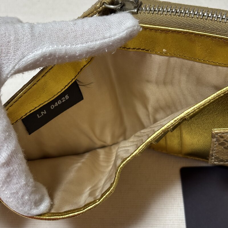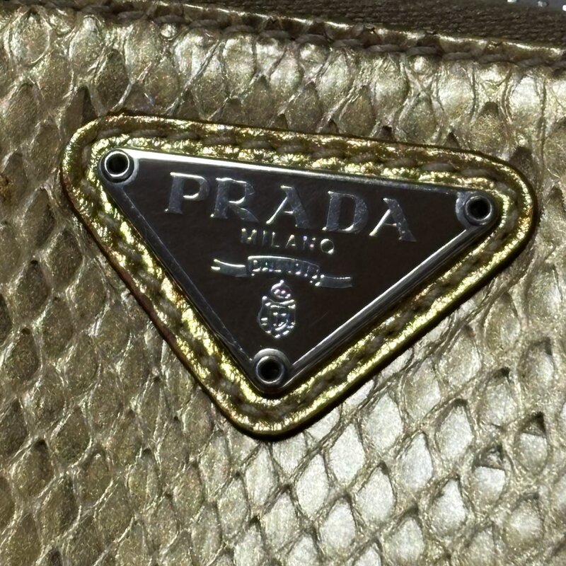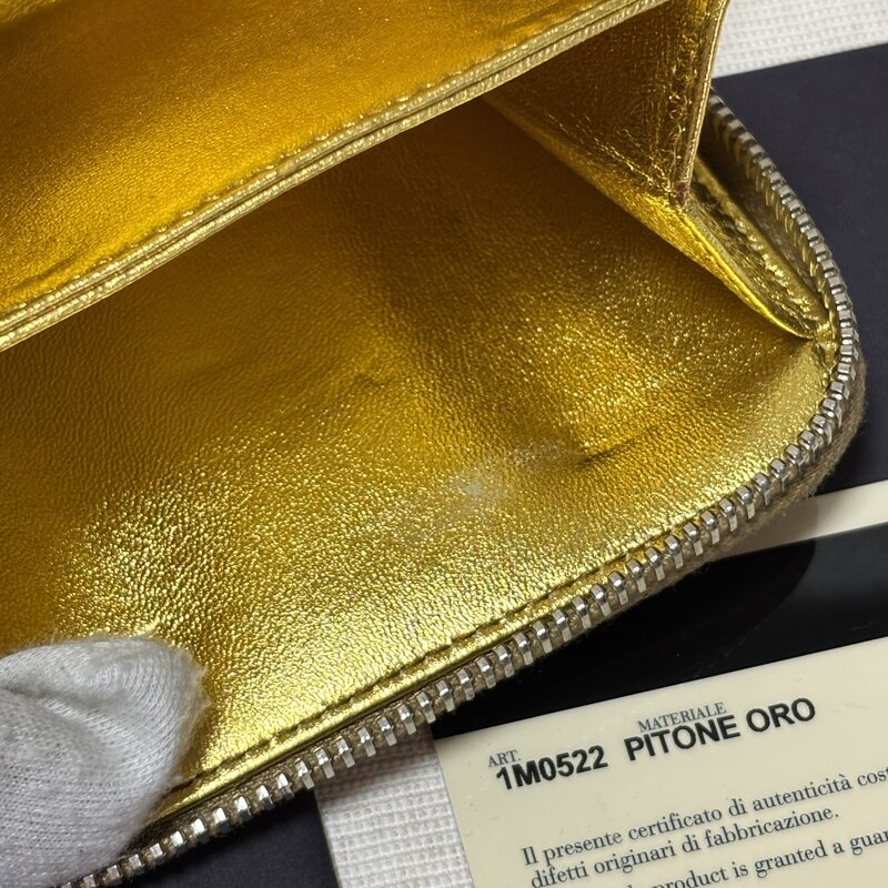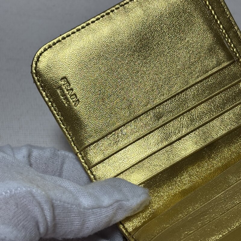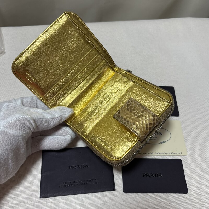 希少 デッドストック級 PRADA プラダ PITONE ORO ヘビ パイソン 財布 二ツ折り ゴールド IW603BA04PRD
