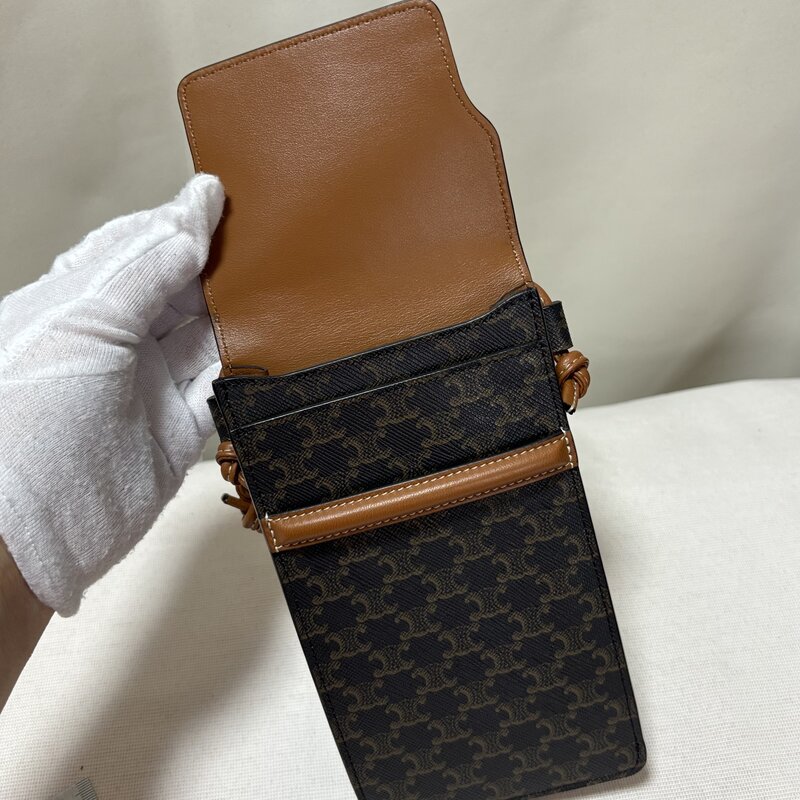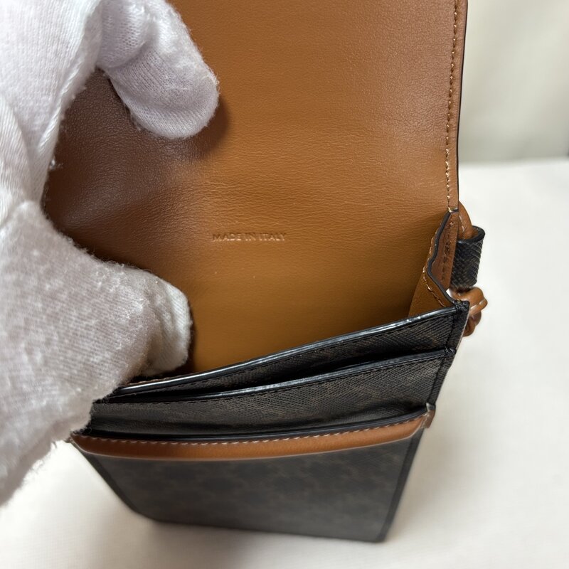 極美品 セリーヌ CELINE 10G332 CQD.04LU モバイルポーチ ショルダーポシェット PVC レザー ブラウン IW603BA08CLN