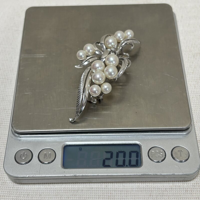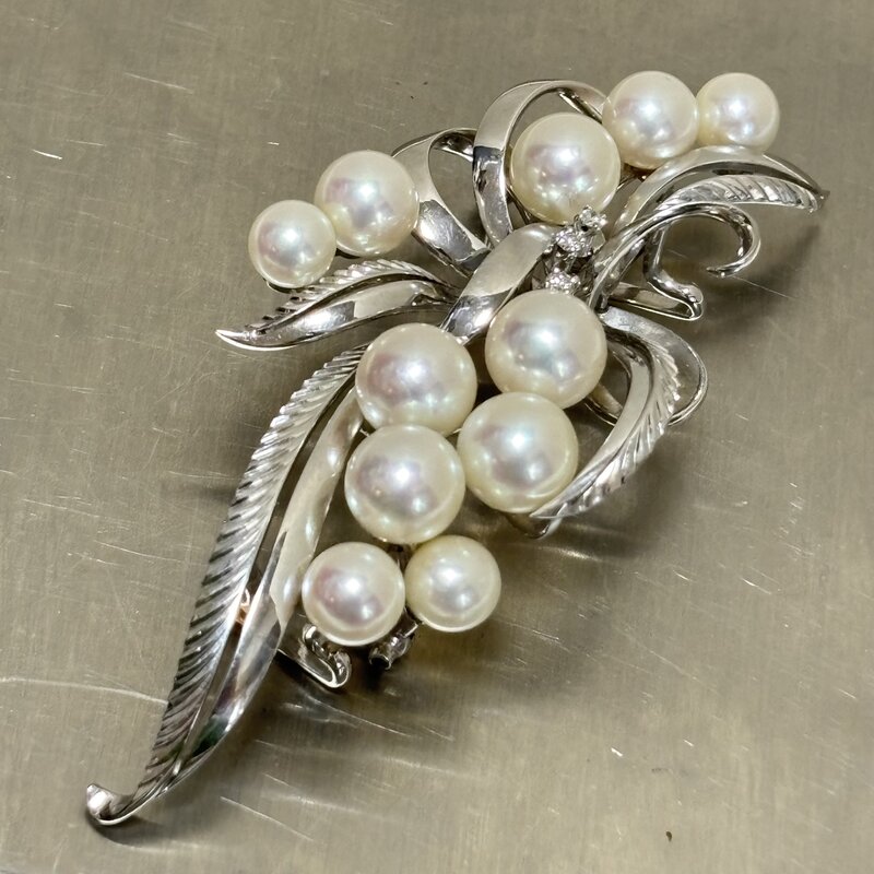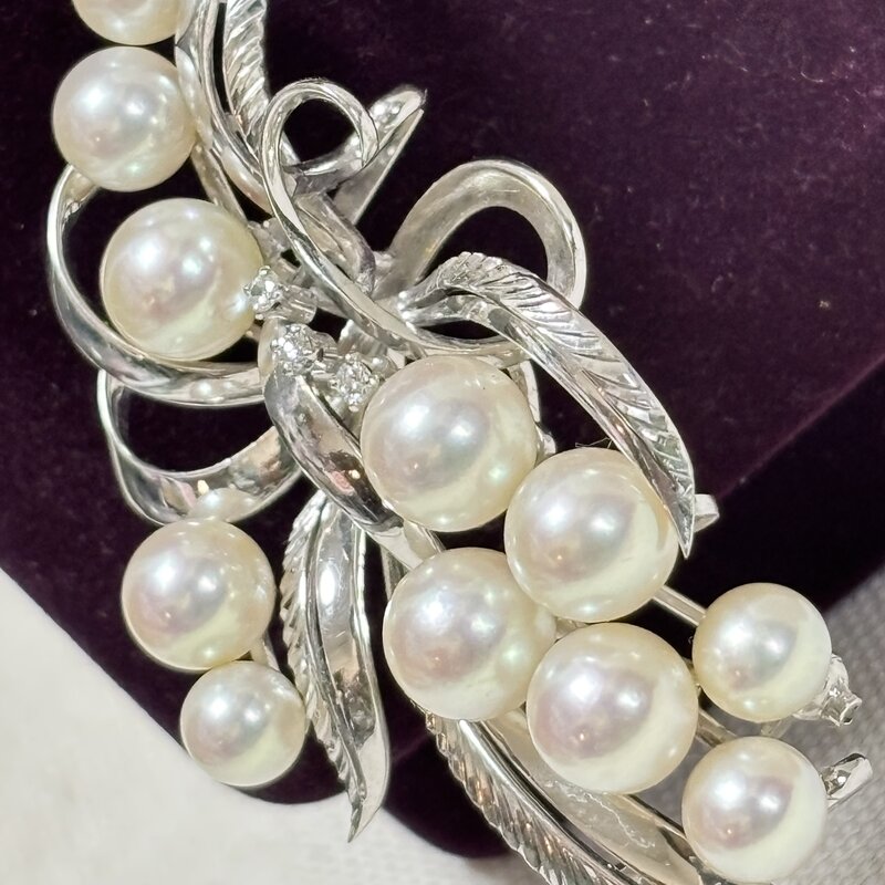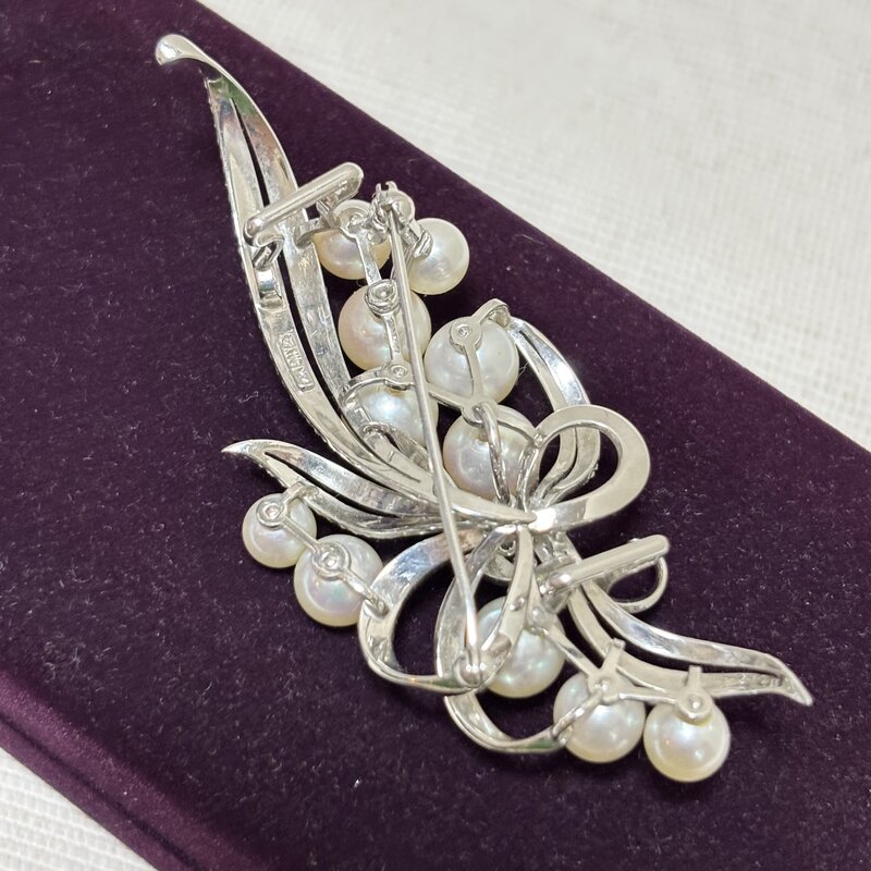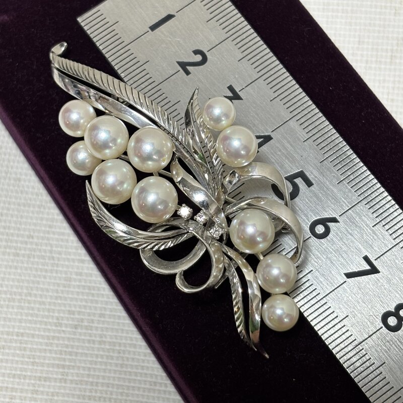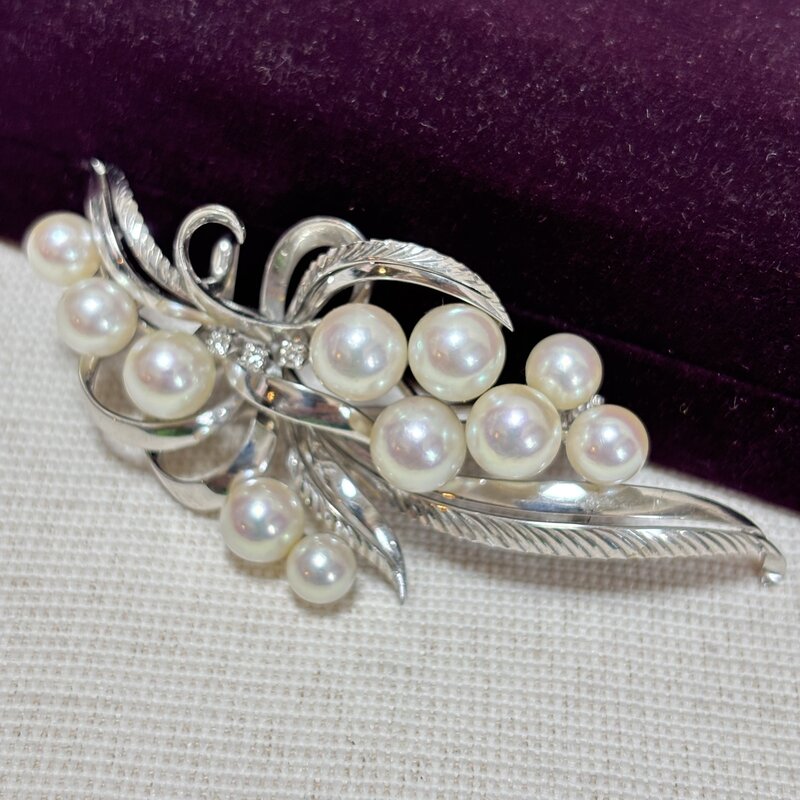 高級ブランドアクセサリー MIKIMOTO ミキモト真珠 パール ブローチ 帯留両用 20.1g K14WG(585) ダイヤ3P IW603BJ03MKM60