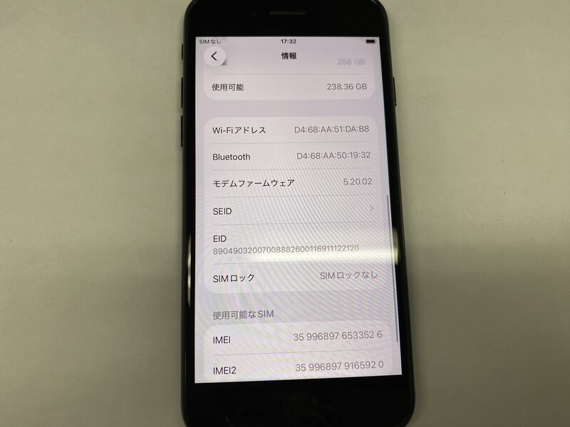 EZ607 SIMフリー iPhoneSE 第3世代 ミッドナイト 256GB