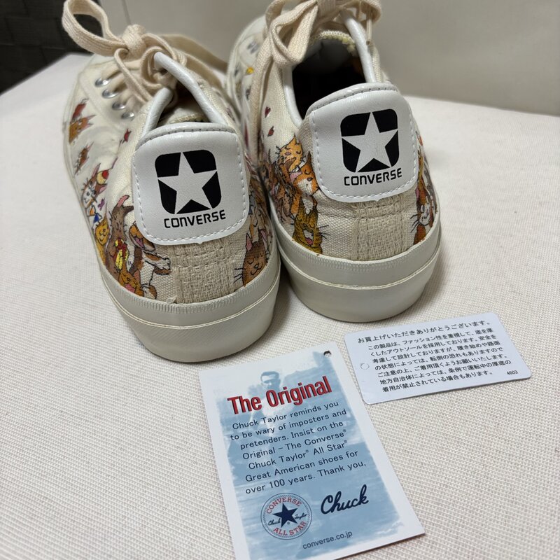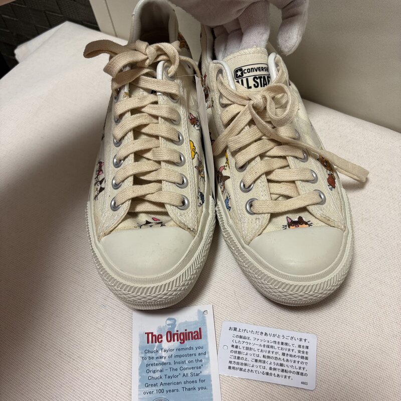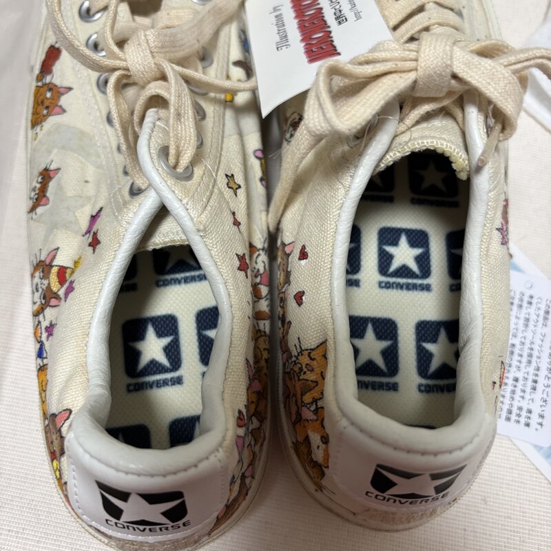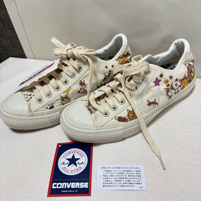 新品 タグ付 CONVERSE NEKONEKOTORATORA イラスト オンリーワン スニーカー 24.0cm オールスター ネコ ハンドペイント IW603BS02CNV_B60