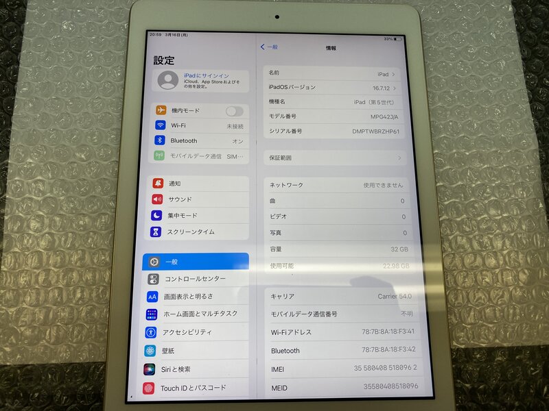 EZ637 SIMフリー iPad 第5世代 Wi-Fi+Cellular A1823 ゴールド 32GB