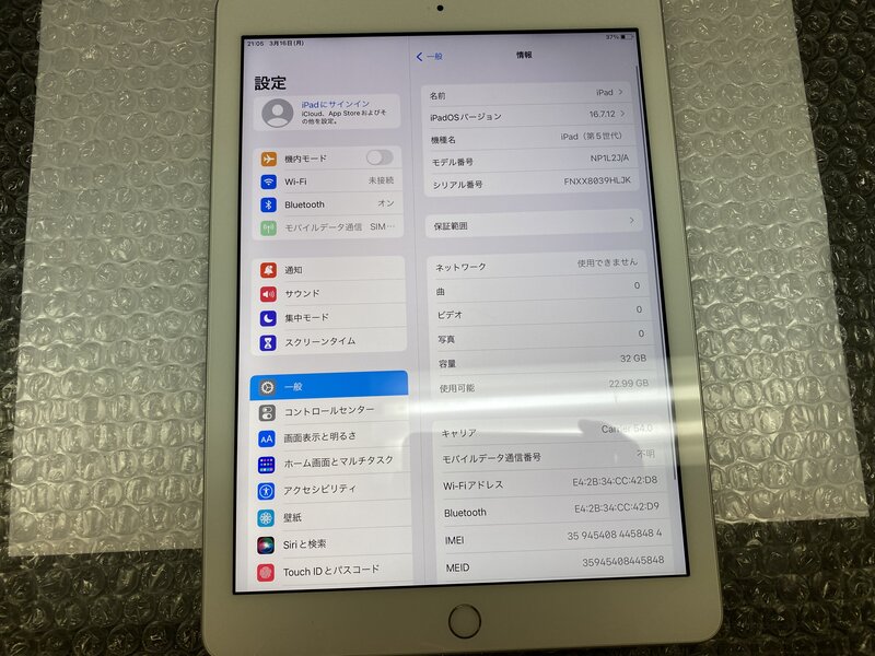 EZ641 SIMフリー iPad 第5世代 Wi-Fi+Cellular A1823 シルバー 32GB