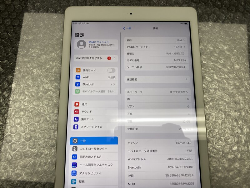 OA017 SIMフリー iPad 第5世代 Wi-Fi+Cellular A1823 シルバー 32GB