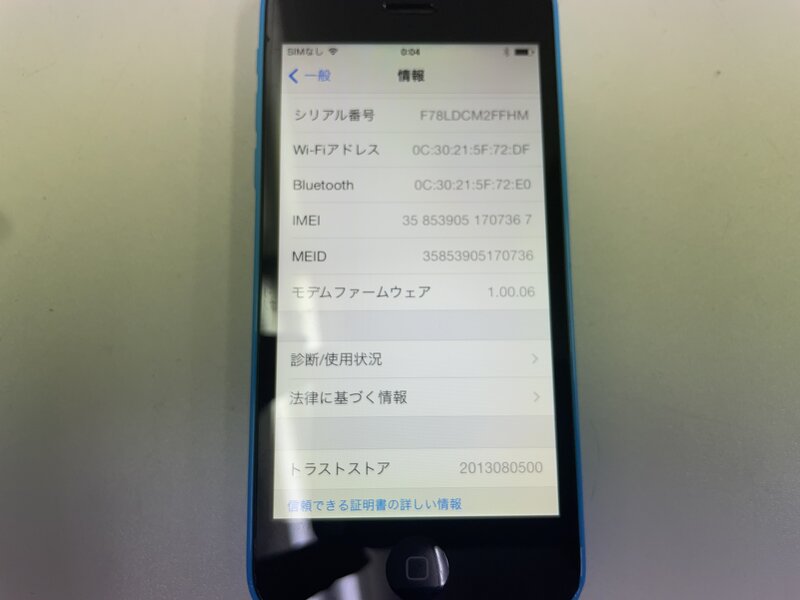 MK471 softbank iPhone5c 16GB ブルー 判定〇