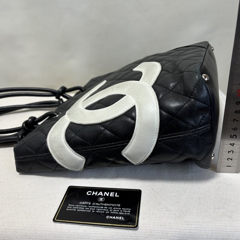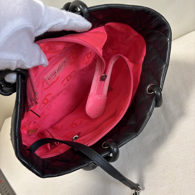 【え】1円~ シャネル CHANEL カンボンライン ミディアム トート ハンドバッグ マトラッセ ラムスキン ココマーク IW604AB_CHNL04_80