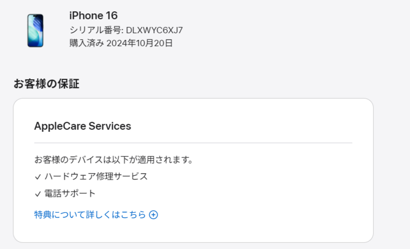※AppleCareは前所有者により解約になる恐れがあります。解約になった場合はAppleCareのサポートを受けることはできません。また解約を理由として弊社に返品返金や一部値引き等を請求されても対応いたしかねます。