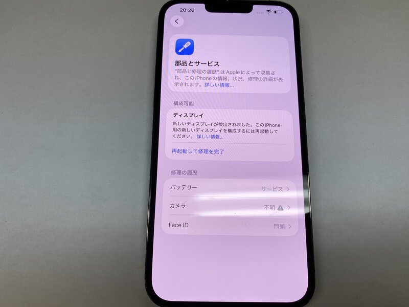 アクティベーションロック・・・OFF ディスプレイ警告・カメラ警告・アウトカメラ不良(0.5倍と3.0倍レンズ切り替え不可)・FaceID不可・充電端子不可(ワイヤレス充電可)