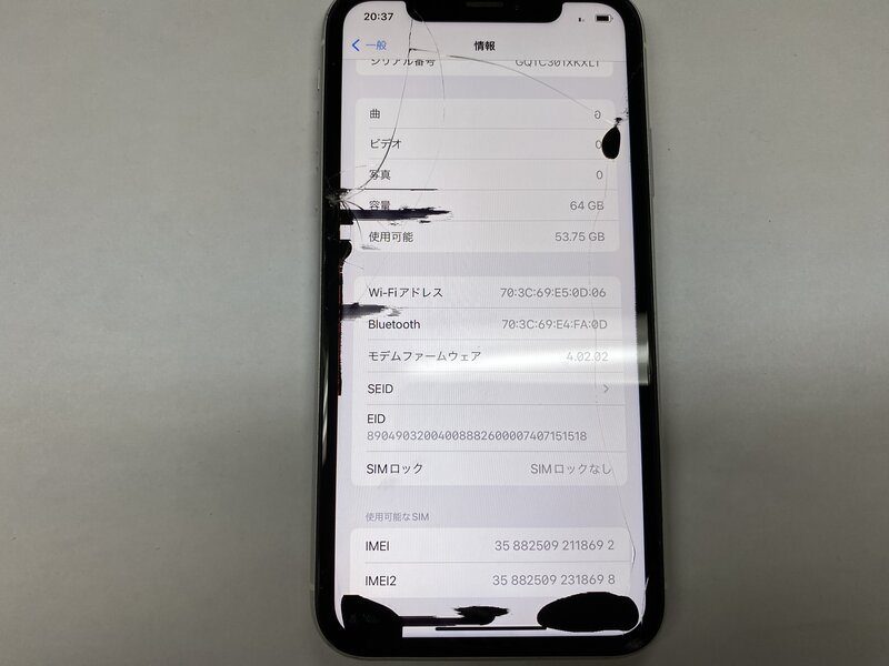 アクティベーションロック・・・OFF 画面割れ・表示不良