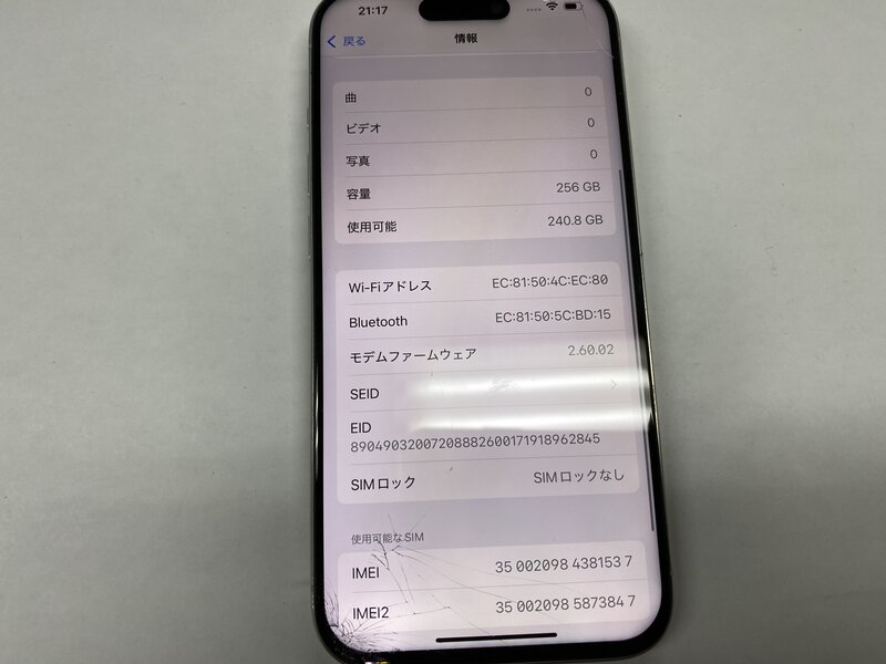 アクティベーションロック・・・OFF 画面割れ・ディスプレイ警告