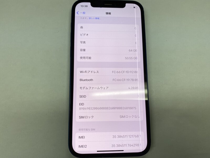 アクティベーションロック・・・OFF 表示不良・SIMトレイなし