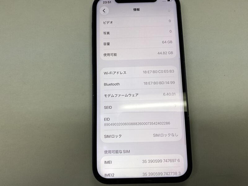 アクティベーションロック・・・OFF バッテリー交換品・ディスプレイ警告・音量大ボタン不可
