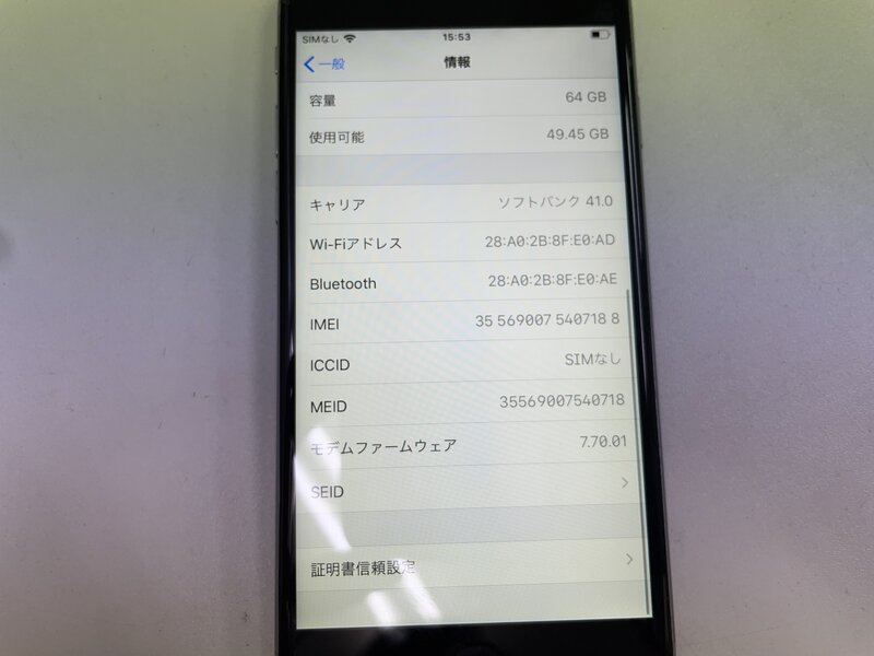 アクティベーションロック・・・OFF パネル浮き・バッテリー膨張・液晶焼け