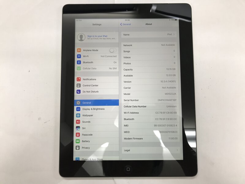LH705 au iPad 4th Wi-Fi+Cellular 16GB ブラック 判定〇