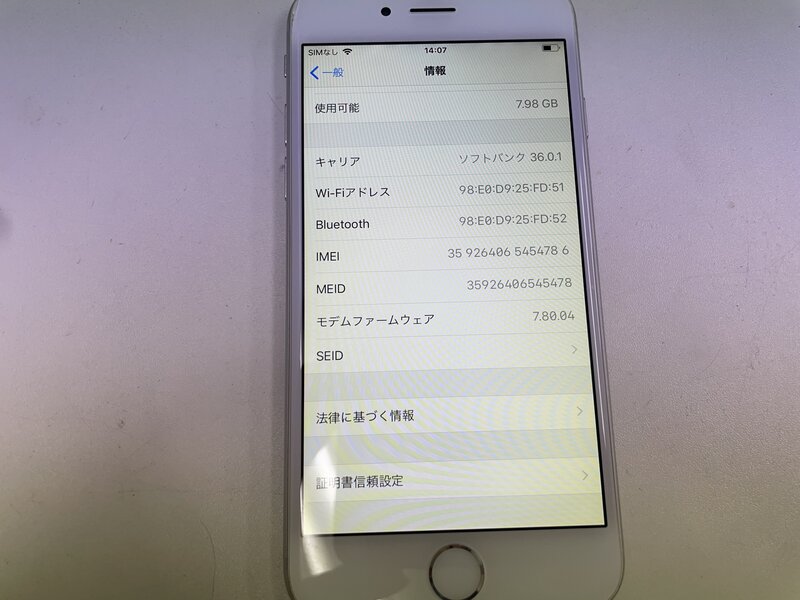 MK967 softbank iPhone6 16GB シルバー 判定〇