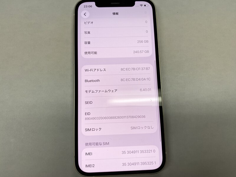 OB624 SIMフリー iPhone12 ホワイト 256GB