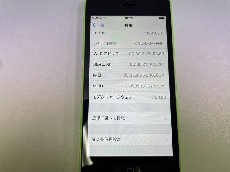MK978 au iPhone5c 16GB グリーン 判定〇