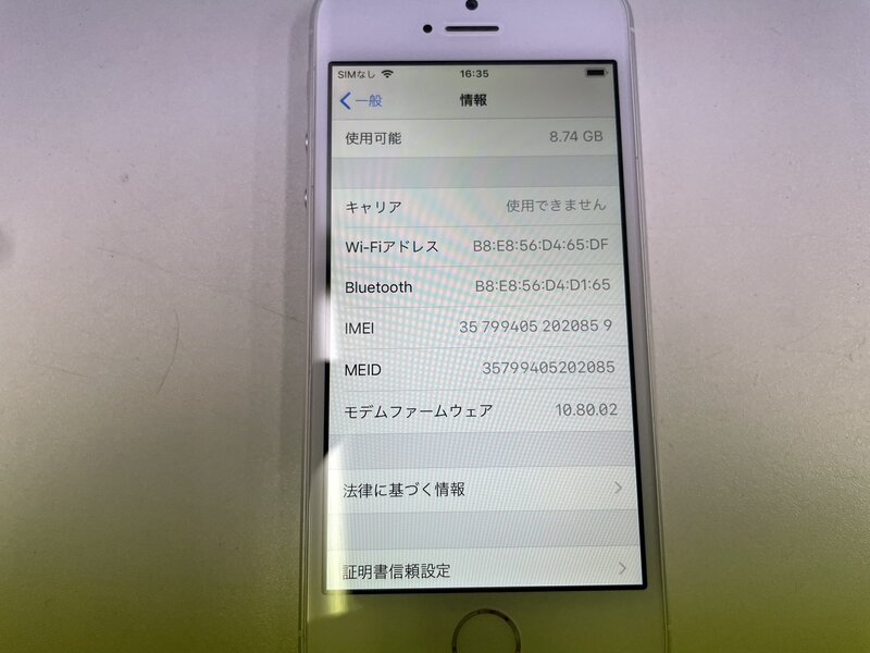 MK989 au iPhone5s 16GB シルバー 判定〇
