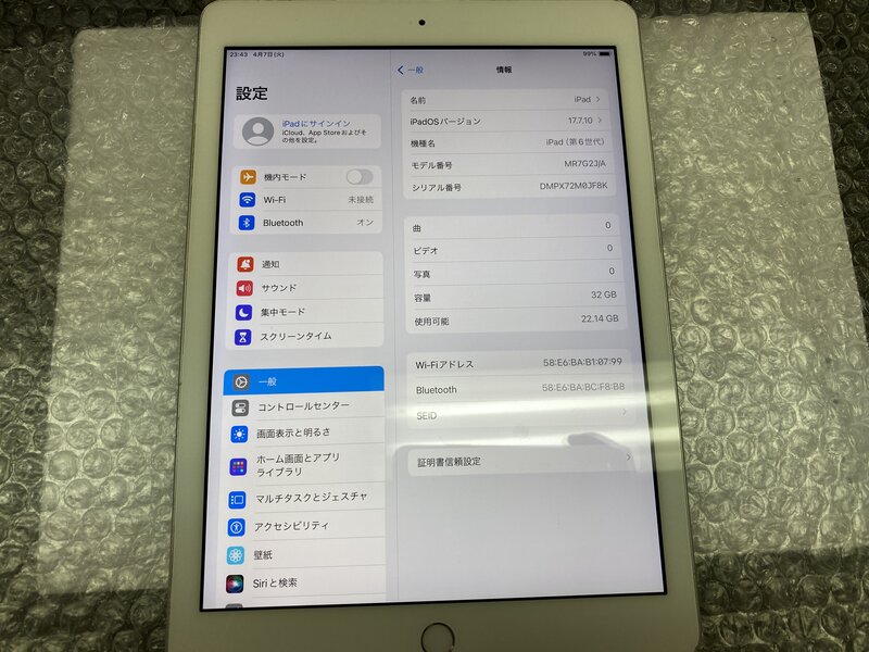 アクティベーションロック・・・OFF 本体歪み