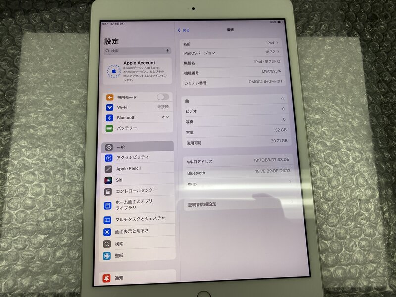 アクティベーションロック・・・OFF 充電端子の接触不良・液晶赤み